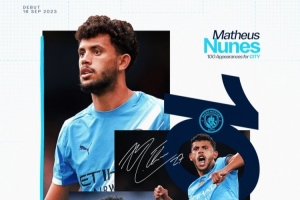 此役這名球員迎來曼城生涯百場里程碑,此前出戰(zhàn)的99場比賽,努內(nèi)斯貢獻5球21助攻,隨隊獲得了英超、社區(qū)盾、世俱杯共3個冠軍。