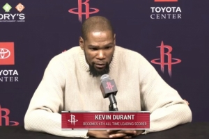 體育資訊1月19日訊 火箭今日主場119-110輕取鵜鶘,杜蘭特榮升NBA歷史得分榜第六,賽后接受了媒體采訪。