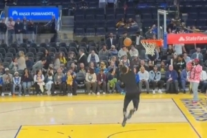 賽前,勇士球星庫里上腳李寧韋德之道12進行熱身,背身拋球助跑勉扣可惜未能成功。