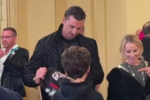 伊布在米蘭冬奧會開幕式當(dāng)天與高布倫見面,向這位知名演員贈送了一件定制的米蘭球衣,這件球衣背面印有高布倫的名字和26號,這份禮物讓高布倫驚喜不已,他對伊布表示感謝。