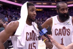 賽后,米切爾談到了新隊友哈登,他表示:"當一位功成名就的球員加入球隊,并對你說'不用顧慮,按你的方式打'時,確實需要一點...倒不是尷尬,因為我早就認識他,但就是那種需要時間去適應(yīng)的情況。