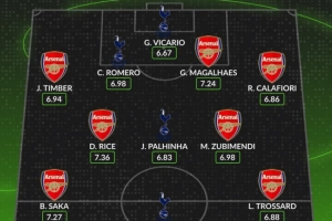 前鋒:薩卡(阿森納)、理查利森(熱刺)、特羅薩德(阿森納)