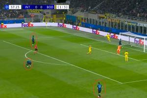 本場(chǎng)比賽第58分鐘,阿坎吉后場(chǎng)巨大失誤回傳送禮,海于格破門。失誤之后,國(guó)米防線全員直接呆住了,只有澤林斯基回追。被進(jìn)球后,阿坎吉捶地懊惱,非常郁悶。